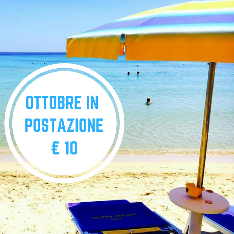 Tranquillità e un mare cristallino. Lido Fontane Bianche vi aspetta per tutto il mese di Ottobre. L’offerta per il vostro pieno relax prevede la postazione (2 lettini + 1 ombrellone) ad € 10. Goditi ancora il mare della nostra baia, comodamente sdraiato a pochi centrimetri dalla riva.